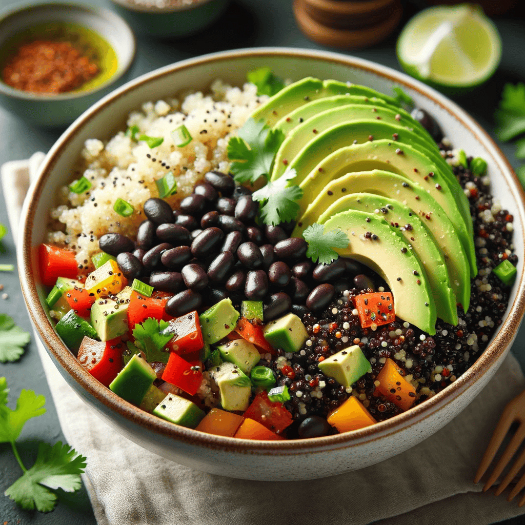 Ensalada de quinoa al estilo suroeste con frijoles negros, mango y aguacate
