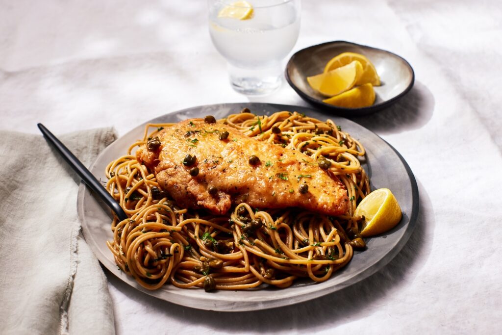 Receta saludable de piccata de pollo con limón, alcaparras, vino blanco y perejil. Una versión deliciosa y saludable del clásico pollo al limón italiano.